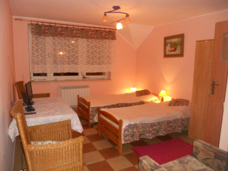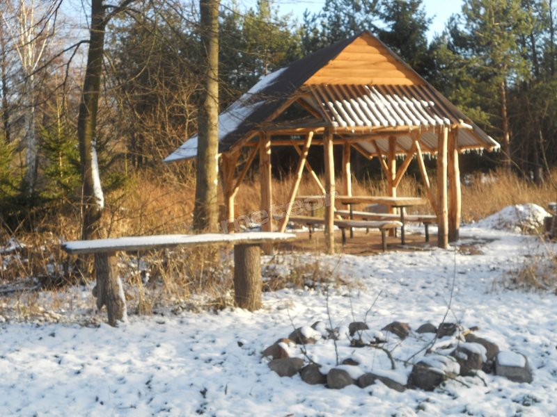 Open all year round, located by the Bug River (around 300 m); accommodation for 28 guests, rooms with bathrooms, a kitchenette, a canteen, two spacious terraces, a relaxation area (big and small swing, a hammock, a sandpit), a pond, a grill place and a campfire place. An option to order board, table tennis and badminton equipment, bike and canoe rental, angling.