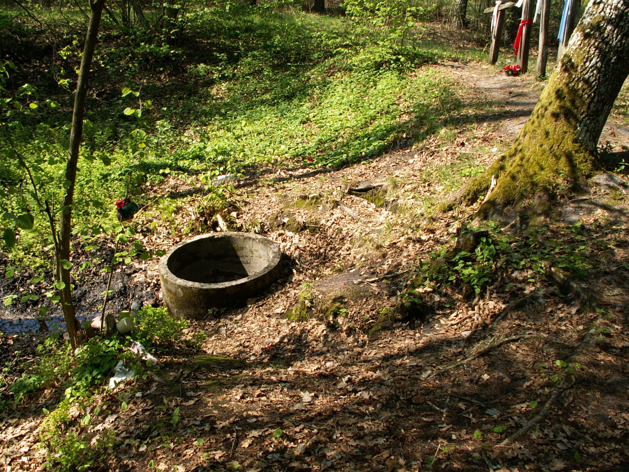 It is located in a forest, around 200 m from the route between the villages of Moszczona Królewska and Radziłłówka. Local residents believe that there used to be an orthodox church, which sunk into the ground and after that a spring gushed from the ground. Nearby there are Orthodox crosses.